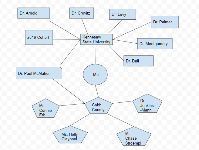 My current PLN has two sections, although there are some instances in which they overlap. The first section is the network I’ve built from Kennesaw State University. This section consists of professors, classmates, and field supervisors. My classmates have provided me with valuable information about classroom management and how to handle certain situations. My professors have provided me with a foundation of what to expect from both the administration and the state in regards to meeting standards and creating lesson plans. My field supervisor, Dr. McMahon, is linked to both sections. He was my supervisor through KSU, but he also was a principal and assistant principal for many years in Cobb. Dr. McMahon was an fantastic resource to have for learning about what to expect from Cobb and he also was kind enough to offer me a letter of recommendation. The second section is focused on my network that I have developed from Cobb. I am certain that as I continue to build relationships that this section with increase in size. But, so far, it included the principal and assistant principals at my new school and my CT from student teaching.
